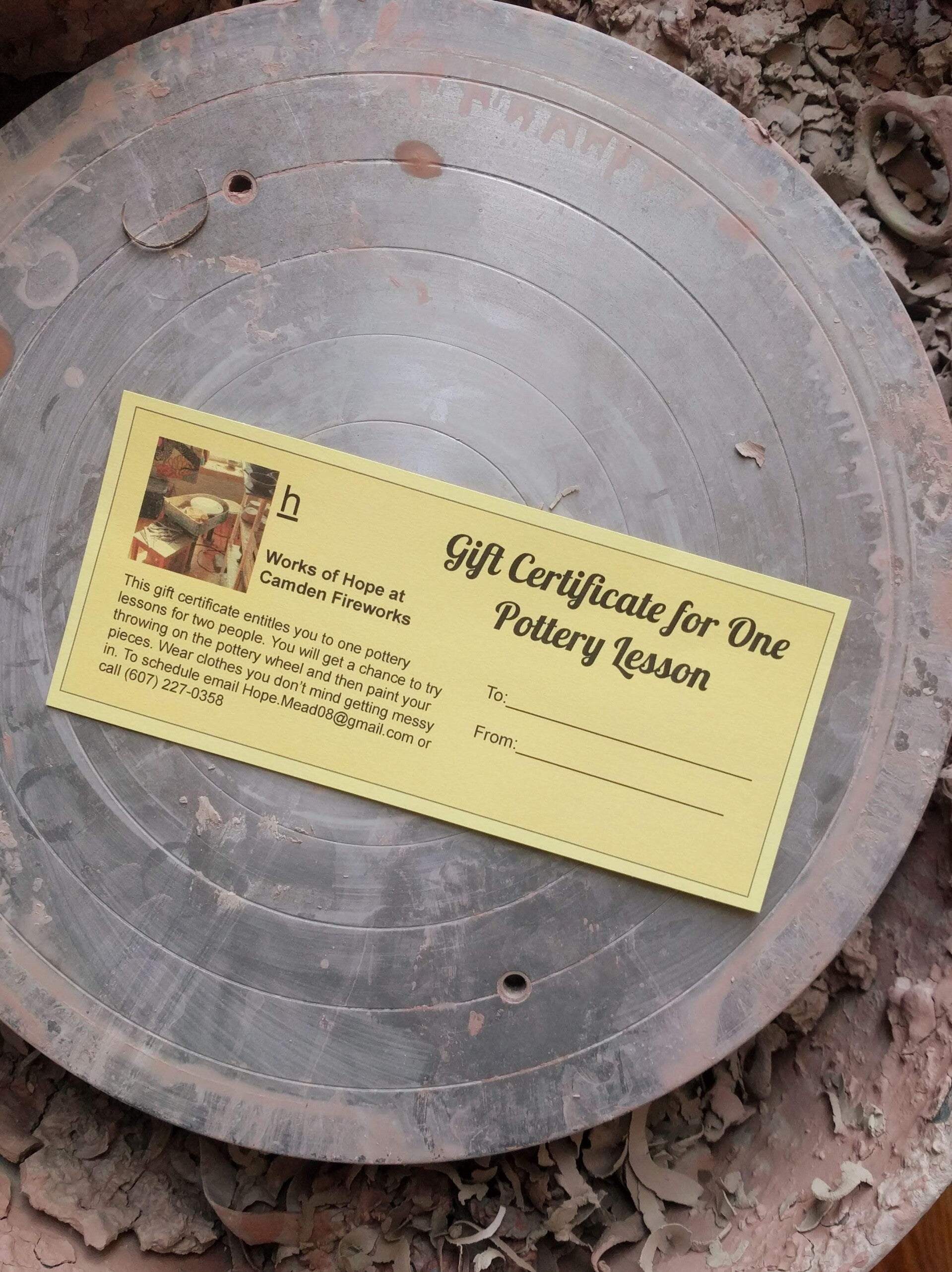 This lesson is for two people but the studio can accommodate up to 4 people at a time for lessons so if you want to purchase two gift ceritifcates and come as a group of 4 you can and all materials are included. Lessons are 1 ½ hours long and pottery will be ready for pick up in about 3 weeks.