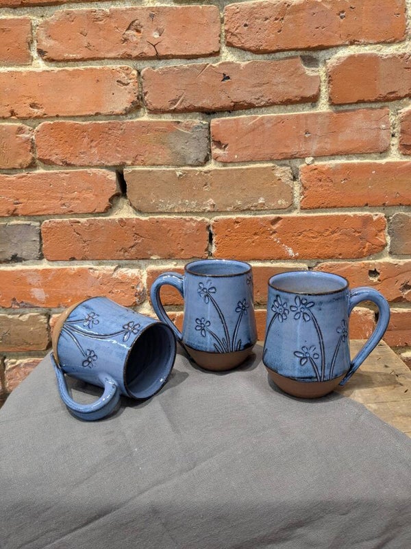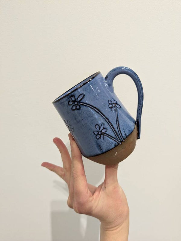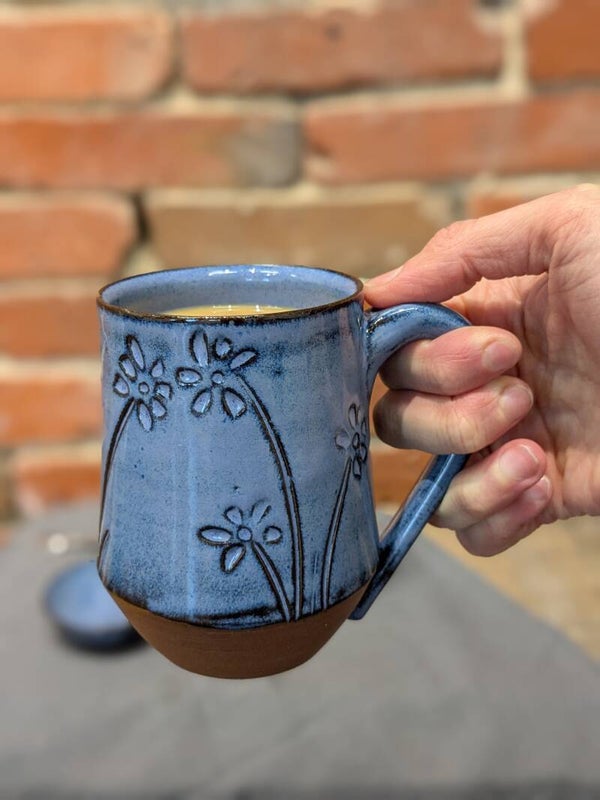 Blue Flower Coffee Mug, Handmade Ceramic, Ready to Ship